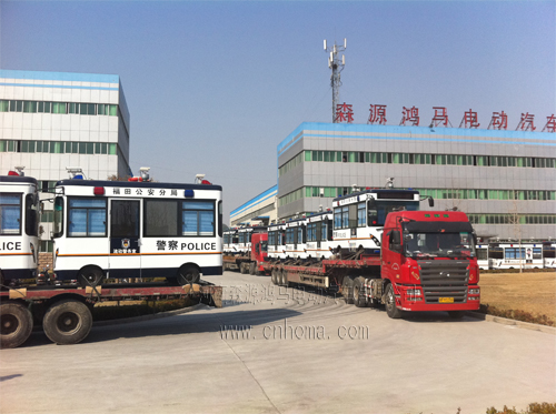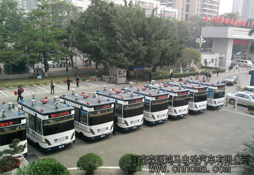 3月9日下午,深圳福田區(qū)公安局再次采購我公司鴻馬流動警務室舉辦發(fā)車儀式,18輛噴涂成巡邏警車的電動汽車流動警務室從即日起在深圳福田公安局執(zhí)行巡邏任務。