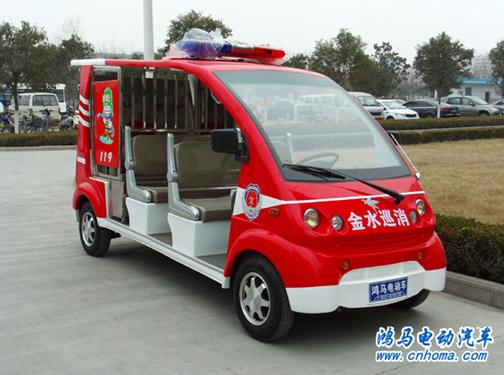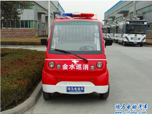 2012年3月15日上午,一臺(tái)鄭州金水區(qū)電動(dòng)消防巡邏車在河南鴻馬電動(dòng)汽車公司舉行發(fā)車儀式。
