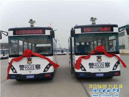 2012年4月9日上午,在河南森源鴻馬電動(dòng)汽車公司長(zhǎng)葛生產(chǎn)基地舉行張家口涿鹿縣警用便民移動(dòng)警務(wù)室發(fā)車儀式。