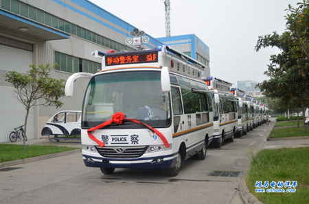 5月25日下午,在河南森源鴻馬電動汽車公司舉行湖南省益陽市10臺移動警務(wù)室發(fā)車儀式。