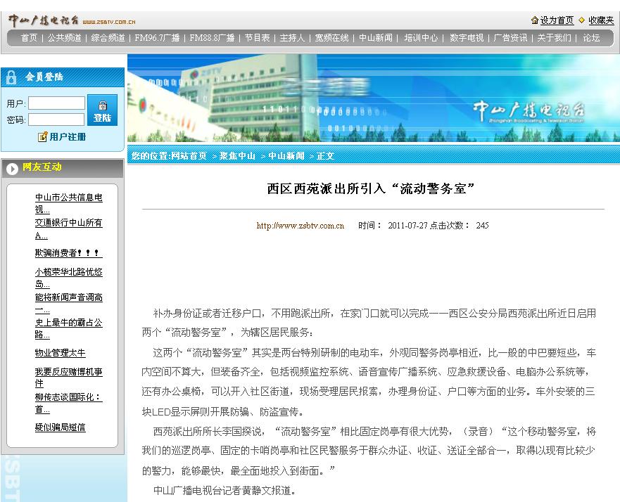 中山廣播電視報(bào)道:西區(qū)西苑派出所引入“鴻馬流動(dòng)警務(wù)室”