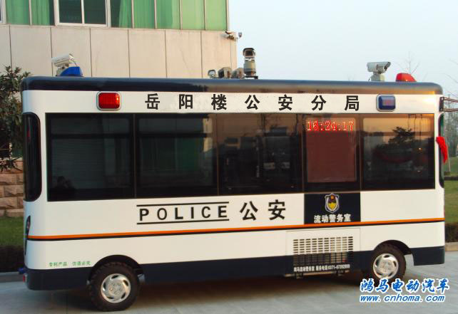 12月25日,6臺外觀漆有鴻馬標志的電動流動警務(wù)室出現(xiàn)在鴻馬電動汽車廣場,這就是發(fā)往湖南省岳陽樓公安分局流動警務(wù)室,它將成為岳陽樓一條“亮麗”的風(fēng)景線。