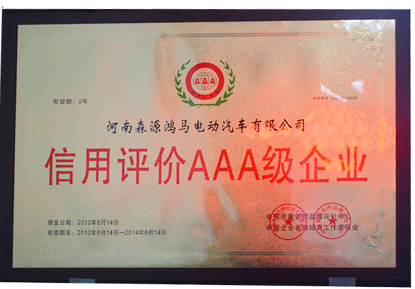 森源鴻馬3A級(jí)信譽(yù)企業(yè)                                     森源鴻馬信用3A級(jí)