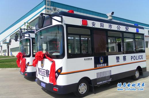 2012年5月17日下午,在河南森源鴻馬電動汽車公司生產(chǎn)基地舉行安陽市公安局移動警務(wù)室發(fā)車儀式。