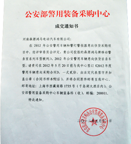 近日,河南森源鴻馬流動(dòng)警務(wù)室進(jìn)入公安部采購目錄。河南森源鴻馬電動(dòng)汽車有限公司與公安部警用裝備采購中心簽署車輛采購協(xié)議,標(biāo)志著該公司生產(chǎn)的鴻馬移動(dòng)警務(wù)室正式進(jìn)入公安部警用裝備采購目錄。