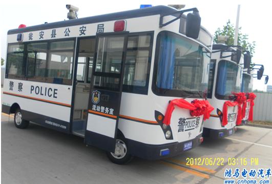 2012年6月22日下午,在河南森源鴻馬電動汽車公司舉行貴州甕安縣鴻馬移動警務(wù)室發(fā)車儀式。