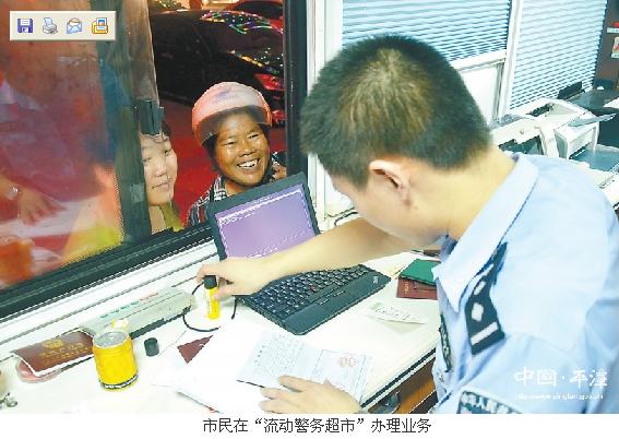 “我們這個‘超市’主要是借助福建公安公眾服務網(wǎng)‘5+N’服務大廳,將互聯(lián)網(wǎng)與公安網(wǎng)對接,目前提供3類共30項警務服務項目,基本能實現(xiàn)當場辦結!泵窬中鄣芨嬖V記者,居住在城區(qū)但戶口在鄉(xiāng)鎮(zhèn)的群眾,如要辦理相關的戶政手續(xù),就必須到戶口所在地的派出所辦理,十分不便,而現(xiàn)在‘流動警務超市’就能為他們辦理,且即辦即取!