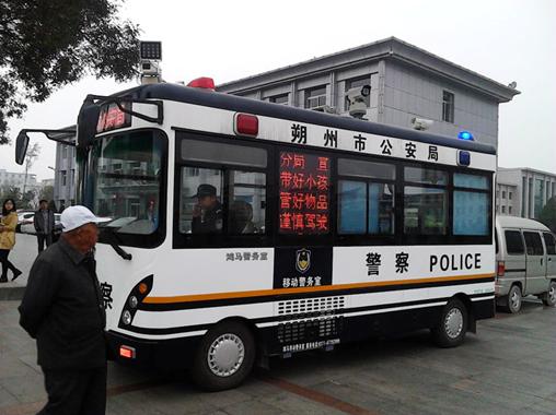 10月15日上午,在山西朔城區(qū)政府廣場一臺鴻馬流動警務室的出現(xiàn)吸引了眾人的目光,流動警務室車身LED顯示屏上,打著“帶好小孩  管好物品 謹慎駕駛”的字樣,溫馨的提示著在這里工作生活的每一個居民,這是山西朔城區(qū)公安局根據(jù)社情民意,推進警務創(chuàng)新的重要舉措。