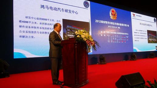 2012年10月29日上午,由公安部警用裝備采購中心主辦的2012最新警用車輛集中采購展示推介會在江西南昌紅谷灘隆重舉行,本次推介會共有28家警用產(chǎn)品企業(yè)參展,公安部警用裝備采購中心王強(qiáng)主任等有關(guān)領(lǐng)導(dǎo)參加此次會議。鴻馬電動(dòng)汽車公司攜3款新型產(chǎn)品(4.5米電動(dòng)流動(dòng)警務(wù)室、6米燃油流動(dòng)警務(wù)室、5.5米改裝流動(dòng)警務(wù)室)亮相,其亮麗、恢弘的外觀獨(dú)樹一幟,成為此次推介會一道亮麗的風(fēng)“警”線,在本次推介會上大放異彩。