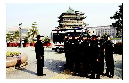 陜西西安:鴻馬流動(dòng)警務(wù)室鐘樓上崗