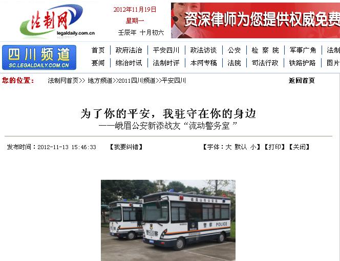 轉(zhuǎn)載法制網(wǎng):四川峨眉公安新添戰(zhàn)友鴻馬“流動警務(wù)室”