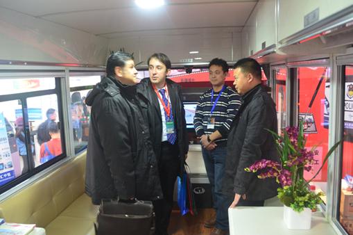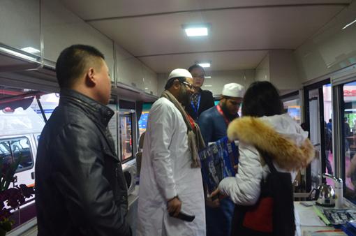 印度客戶在向工作人員咨詢鴻馬流動(dòng)警務(wù)室出口事宜