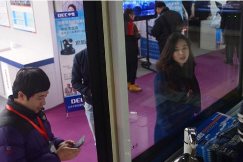 北京安博會(huì)鴻馬流動(dòng)警務(wù)室展區(qū)前人潮如織