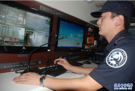 警務工作人員在警務室觀看監(jiān)控視頻