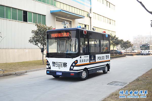 1月26日下午,在河南森源鴻馬電動汽車公司舉行廣州海珠區(qū)鳳陽派出所鴻馬流動警務(wù)室發(fā)車儀式。