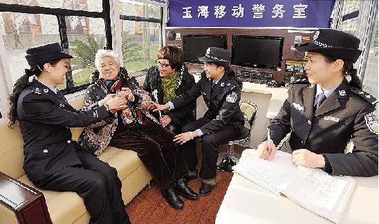 1月21日,在玉海鴻馬流動(dòng)警務(wù)室內(nèi),民警正在接待求助市民。