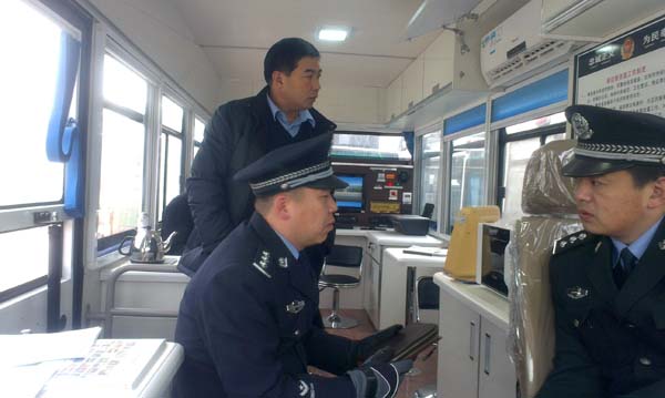 青海公安廳領(lǐng)導在流動警務室上參觀體驗