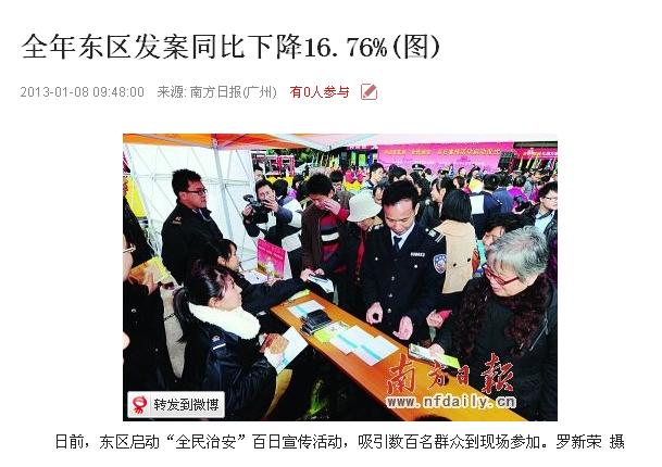 “全民治安”工作的核心,就是積極發(fā)動(dòng)全社會(huì)的力量,共同開(kāi)展治安防范。為了在全區(qū)掀起“全民參與”的氛圍,東區(qū)把宣傳工作放到了至關(guān)重要的位置,并一以貫之地推動(dòng),起到了立竿見(jiàn)影之效。