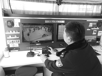 民警利用監(jiān)控設(shè)備觀察西寧市新寧廣場內(nèi)的情況