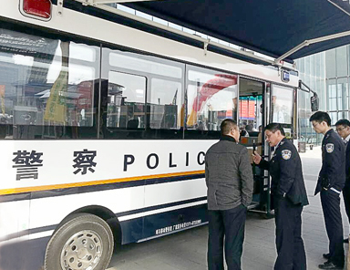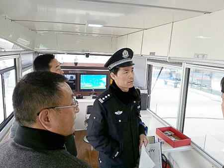警務(wù)工作者參觀流動(dòng)警務(wù)室