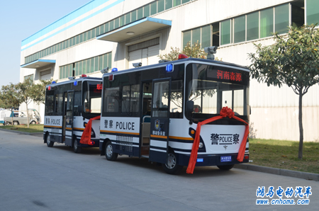 4月7日上午,在河南森源鴻馬電動(dòng)汽車公司舉行河南省新鄭市移動(dòng)警務(wù)室發(fā)車儀式。