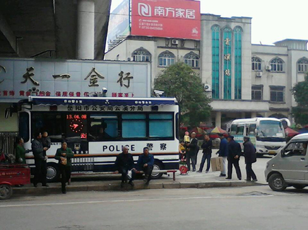 移動(dòng)警務(wù)室在岳陽市街面開展巡邏活動(dòng)