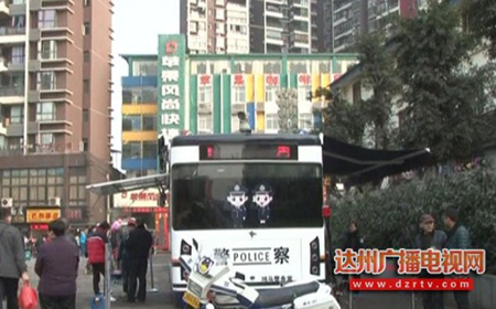 在火車站外,一輛閃爍著警燈的警用小巴士停放在人潮涌動的路邊,這就是通川區(qū)公安分局專門配置的流動警務(wù)車。