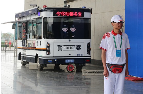 移動(dòng)警務(wù)室與志愿者成為中博會(huì)一道亮麗的風(fēng)景線(xiàn)
