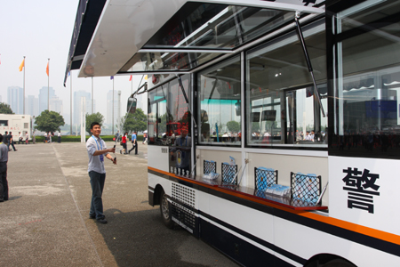 移動(dòng)警務(wù)室在中博會(huì)現(xiàn)場(chǎng)執(zhí)勤