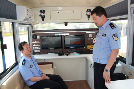 天津市公安局領(lǐng)導(dǎo)登上鴻馬移動警務(wù)室進行實際體驗