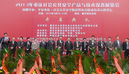 河南森源鴻馬電動汽車公司總經(jīng)理馬鴻軍出席(左六)重慶安博會