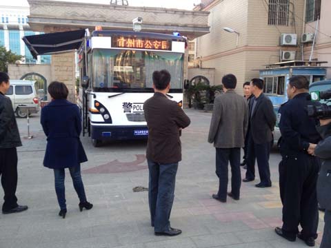 宜州市公安局莫局長參觀鴻馬移動警務(wù)室