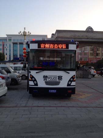 在宜州市公安局,記者見到了此次配發(fā)的鴻馬移動警務(wù)室,該移動警務(wù)室外觀新穎,設(shè)計理念先進,硬朗的車身與簡潔明快的線條,給人以強烈的視覺沖擊感,既能有效地震懾犯罪分子,又不失民眾貼心服務(wù)的形象,是城市一道亮麗的風(fēng)景線。