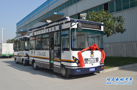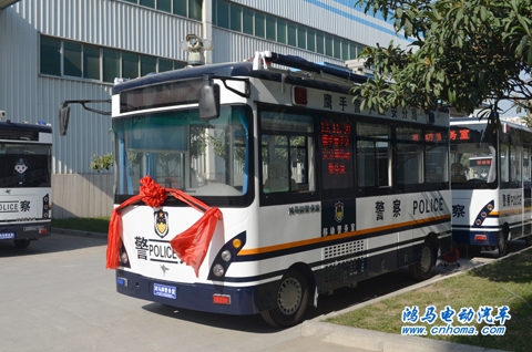 11月30日下午,在河南森源鴻馬電動(dòng)汽車(chē)有限公司舉行河北承德鴻馬移動(dòng)警務(wù)室發(fā)車(chē)儀式。
