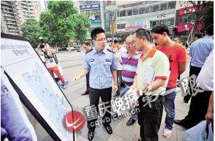 昨日下午,在人流如織的南坪商圈步行街,南坪派出所設(shè)在這里的流動社區(qū)警務(wù)室,吸引了眾多市民的目光。該警務(wù)室比較簡陋,不過現(xiàn)場擺放的精致海報卻相當(dāng)有用:印刷著南坪派出所所有社區(qū)警務(wù)室在轄區(qū)的位置、附近標(biāo)志性建筑、社區(qū)民警姓名聯(lián)系方式等信息,以及關(guān)于社區(qū)警務(wù)室功能、居民日常前往警務(wù)室辦理事務(wù)類型流程等的相關(guān)介紹。