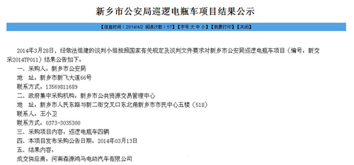 森源鴻馬電動(dòng)巡邏車(chē)新鄉(xiāng)中標(biāo)公告