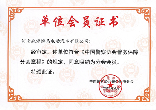 熱烈祝賀森源鴻馬成功入選為中國(guó)警察協(xié)會(huì)警務(wù)保障分會(huì)會(huì)員