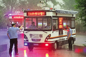 天津鴻馬移動(dòng)警務(wù)室雨中上崗