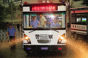 天津鴻馬移動(dòng)警務(wù)室雨中上崗