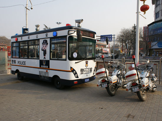 為最大限度地把警力擺在街面,擺在案件高發(fā)、群眾最需要的位置,增強(qiáng)人民群眾安全感,西峰區(qū)一次性投資129萬元,購(gòu)置了5輛鴻馬巡邏流動(dòng)警務(wù)車,于今年1月18日正式亮相南盤旋路、東湖公園、小什字、隴東建材市場(chǎng)、和諧廣場(chǎng)等人員流動(dòng)密集及治安復(fù)雜區(qū)域,承擔(dān)起集報(bào)警求助、警情前期處置、巡查執(zhí)勤、協(xié)管交通、服務(wù)群眾等多種職能。據(jù)介紹,流動(dòng)警務(wù)車配有220V不間斷供電系統(tǒng)、頂置獨(dú)立空調(diào)、鋼化全透明車窗、200W警燈警報(bào)、尾部爆閃、側(cè)部頻閃燈、專用3人座椅、小型辦公室和監(jiān)控系統(tǒng)。安裝了GPS定位系統(tǒng)、車載電臺(tái)、4個(gè)全方位監(jiān)控探頭;配備有電腦、搜索燈、停車示意牌、反光錐筒、警戒帶、滅火器等警用裝備,防刺服、喊話器、打印機(jī)、微波爐、飲水機(jī)、電冰箱、空調(diào)等物品,可以隨時(shí)為市民提供便利服務(wù),為民警工作提供良好環(huán)境。
