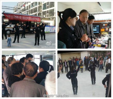 昨天上午山里派出所把居民安全消防體驗移動警務室停在了居委會門口,民警邀請居民上車親身嘗試防盜、防火、防電信詐騙等各類安全防范工具,引來了不少居民圍觀,同時,三里派出所民警在移動警務室前與居民共同演繹了時下流行的神曲“小蘋果”,與居民共娛共樂。