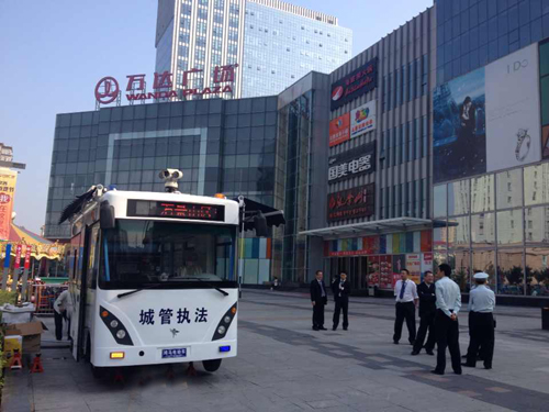 據(jù)悉,這臺(tái)新式鴻馬城管執(zhí)法車配有4個(gè)高清攝像頭,實(shí)現(xiàn)了200米半徑內(nèi)、360°全方位監(jiān)控。視頻畫面通過3G傳輸和視頻回傳系統(tǒng),即時(shí)后傳到后臺(tái)指揮中心,有效彌補(bǔ)了固定“電子眼”的盲區(qū),提高了城管綜合執(zhí)法的效率。