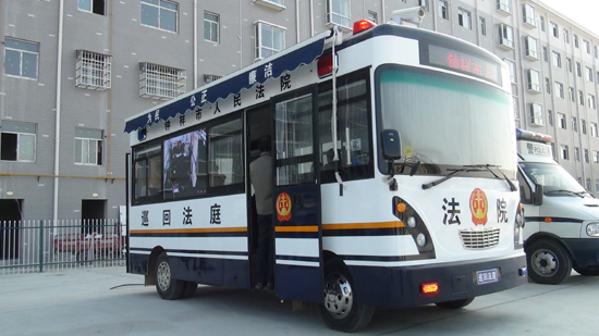 7日,全省法院首輛“車載巡回法庭”在鐘祥市洋辛鎮(zhèn)蔣灘村開庭審理交通事故案。鐘祥市人民法院在全省法院系統(tǒng)率先創(chuàng)建移動車載法庭巡回審判科技庭專用車,形成移動式訴訟服務(wù)、巡回審判、法制宣傳、執(zhí)行指揮功能一體的科技巡回法庭,有效方便鄉(xiāng)村群眾刑事、民事訴訟判決。