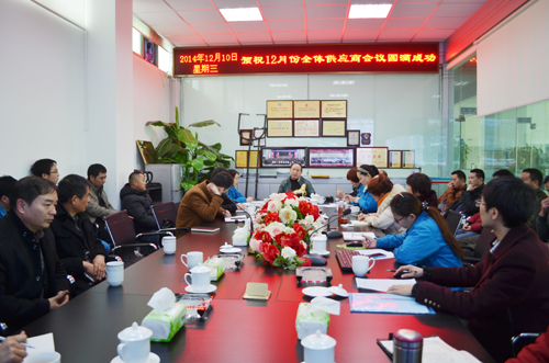 會上,馬總首先向與會供應(yīng)商代表表示熱烈歡迎,感謝長期以來的工作支持,并就公司2014年經(jīng)營情況、新產(chǎn)品研發(fā)、2015年發(fā)展規(guī)劃等向與會代表進(jìn)行了介紹,他表示公司將在2015年繼續(xù)堅持與合作伙伴共贏,為供應(yīng)商創(chuàng)造價值,本著“誠信”宗旨,站在“共同事業(yè)”的戰(zhàn)略高度加強合作,并肩攜手,共同成長,共同發(fā)展,實現(xiàn)雙贏。