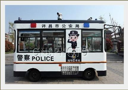 流動警務(wù)室、移動警務(wù)室移動警亭是鴻馬電動汽車有限公司最新推出系列電車,流動警務(wù)室采用新穎的外觀,先進的設(shè)計理念,專門針對城市流動警務(wù)辦公室而設(shè)計。鴻馬流動警務(wù)室硬朗的車身與簡潔明快的線條,給人以強力的視覺沖擊感。流動警務(wù)室既有震撼犯罪分子莊嚴的形象,又不失在民眾心中貼民服務(wù)的印象。被定為2011年第26屆大運會安保指定用車。