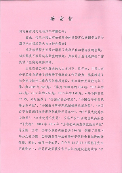 首先,代表井岡山市公安局全體民警衷心感謝貴公司長(zhǎng)期以來對(duì)我局的大力支持和幫助!