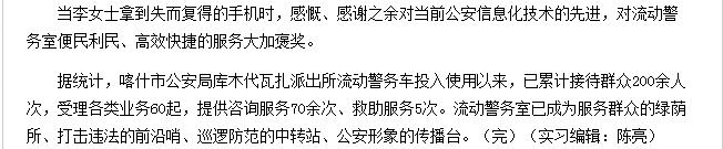 當(dāng)李女士拿到失而復(fù)得的手機時,感慨、感謝之余對當(dāng)前公安信息化技術(shù)的先進,對流動警務(wù)室便民利民、高效快捷的服務(wù)大加褒獎。