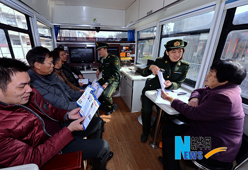 1月9日,長(zhǎng)樂(lè)市漳港邊防派出所戶籍民警在流動(dòng)警務(wù)室上為門樓村村民服務(wù)。