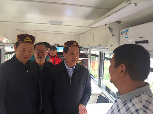 許昌市委書記王樹山向巴里坤縣領導介紹鴻馬高科技移動警務室
