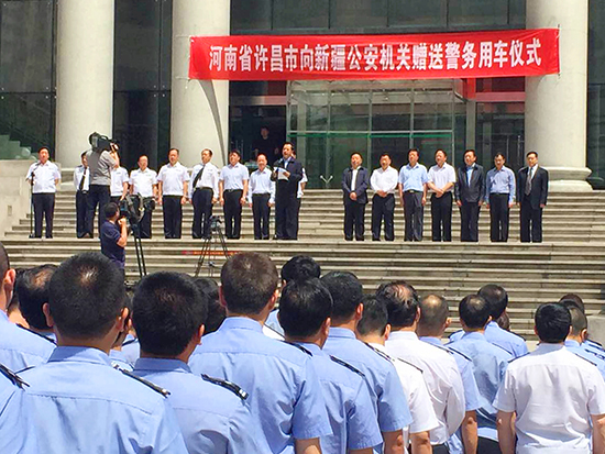 河南省許昌市向新疆公安機關(guān)贈送警務(wù)用車儀式出席領(lǐng)導(dǎo)